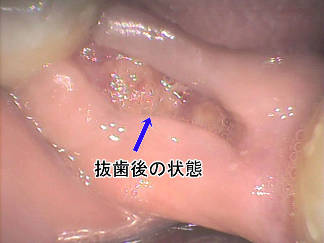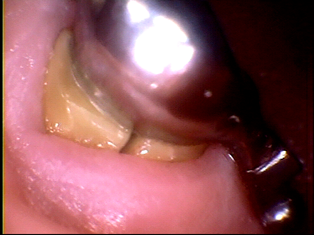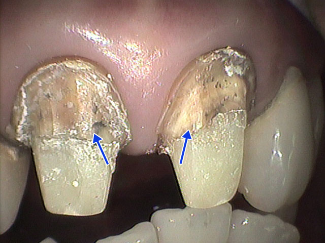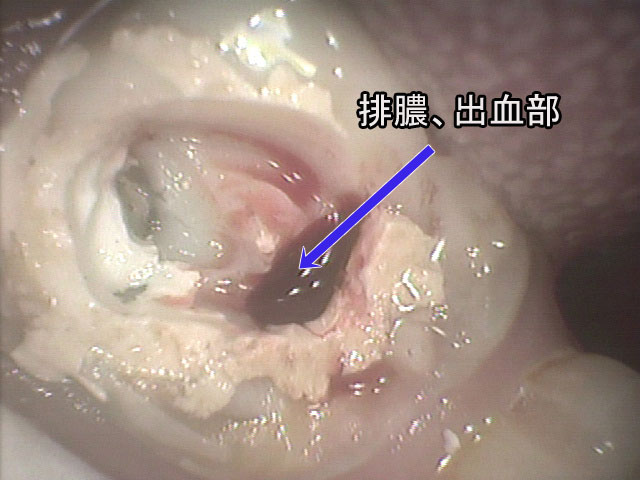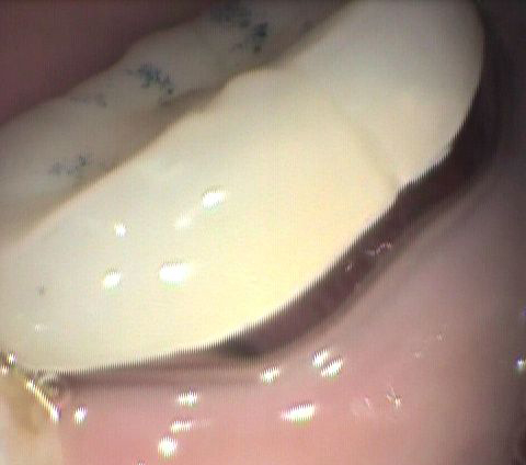 (Video-1) 支台歯(矢印)から検出された細菌