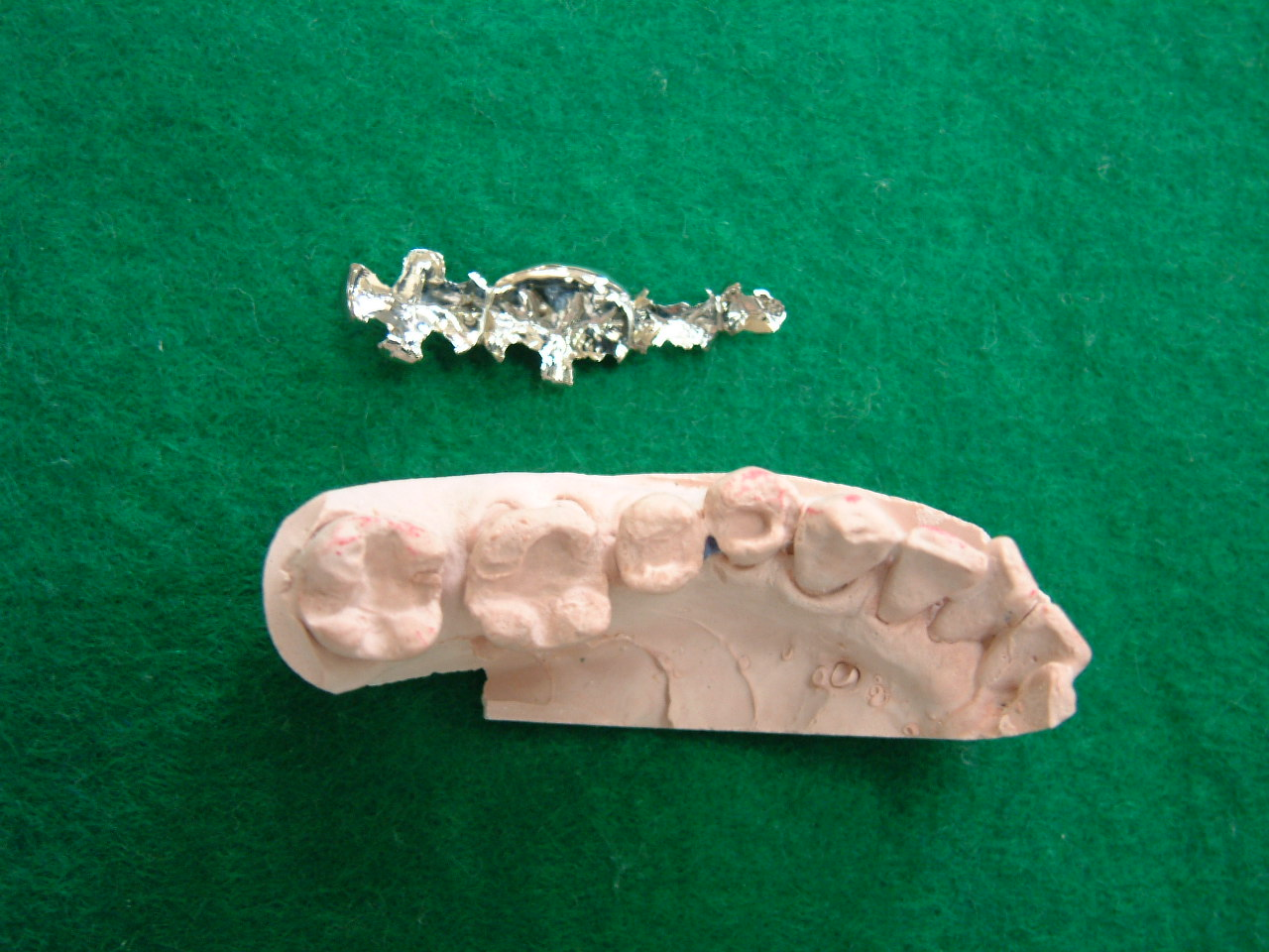 上述の認識が間違っていることは多くの臨床例が示しています。歯周病の悪化による動揺歯を単純に歯を削って連結するだけでは一時しのぎに過ぎず早晩、歯を喪失します。動揺歯固定装置の処置を行なう事前処置として該当歯を仮固定致します。この期間中に仮固定の破損状況などから咀嚼力を分散するために各該当歯の隣接面や咬合面を何回かにわけて仮形成を行ないその都度、仮固定をします。固定装置の成功は、この処置段階によって決まります。